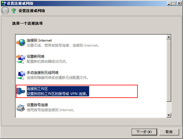 第二步: 選擇“連接到工作區”,點擊“下一步”