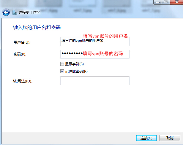 第六步: 填寫你的用戶名和密碼,點擊“連接”,