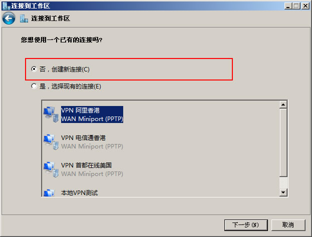 第三步: 如果已經存在其他連接,則選擇“否,創建新連接”;如果沒有,則將被跳過;