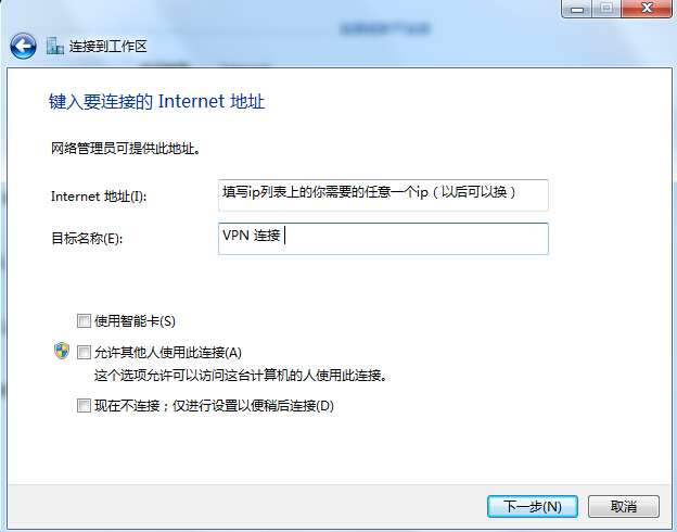 第五步: 在“Internet地址”欄填寫IP列表中任意一個》 (點擊查看ip列表)