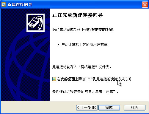 第八步: 建議勾選“在我的桌面上添加一個到此連接的快捷方式”,再點擊“完成”按鈕