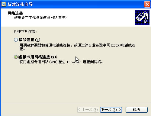 第四步: 選擇“虛擬專用網(wǎng)絡(luò)連接”,再點擊“下一步”按鈕