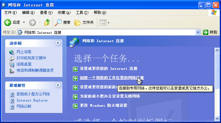 第三步: 點擊“創(chuàng)建一個到您的 工作位置的網(wǎng)絡(luò)連接”
