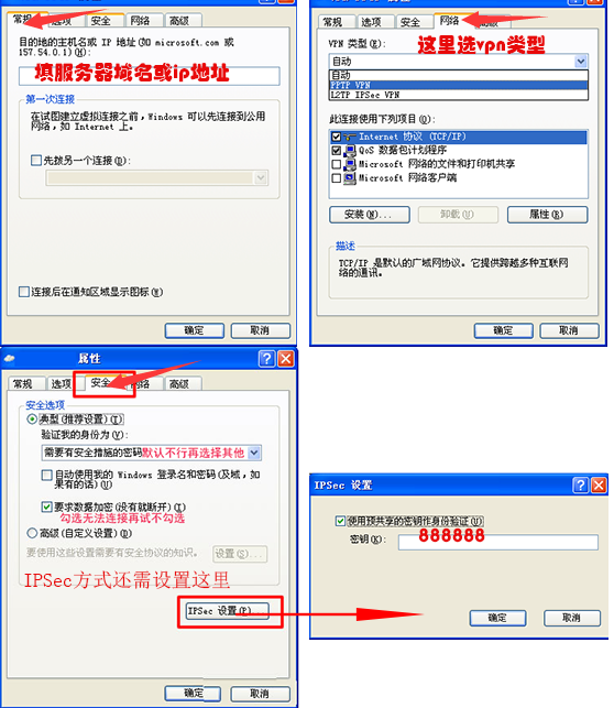 如PPTP方式連接不了,請嘗試用L2TP預(yù)共享密鑰方式,密鑰都是888888